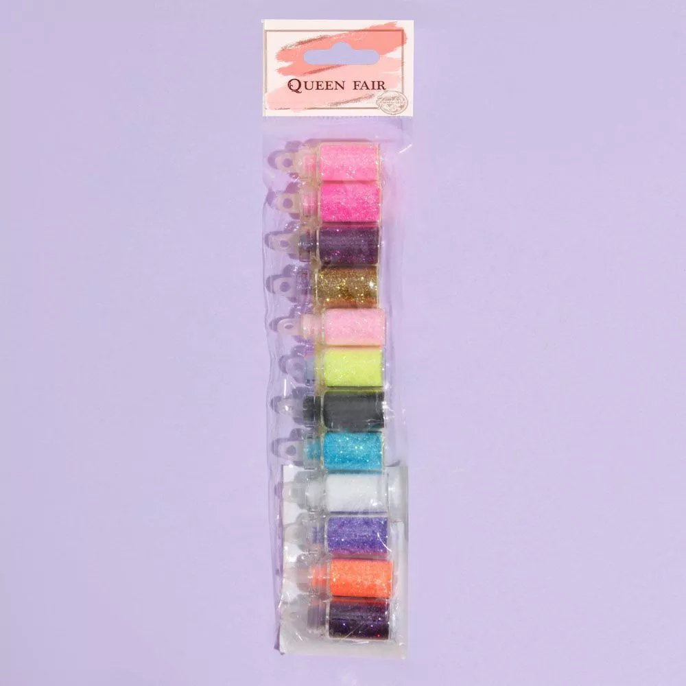 В наборе 12 баночек с мелким глиттером. Можно использовать как наполнитель для шейкера или в качестве подвески на корешок блокнота. Каждый бутылек имеет плотную крышку с отверстием. Внимание! Соотношение цветов в упаковке может не совпадать с указанными на фото