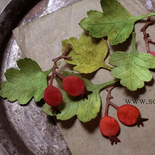 В наборе 3 ножа. Размер большого листика 5х3,5 см, маленького - 4х3 см, ягод - 4,5х2,5 см. Линии на лепестках - это прожилки (тиснение). Специальный инструмент не требуется, тиснение происходит одновременно с вырубкой