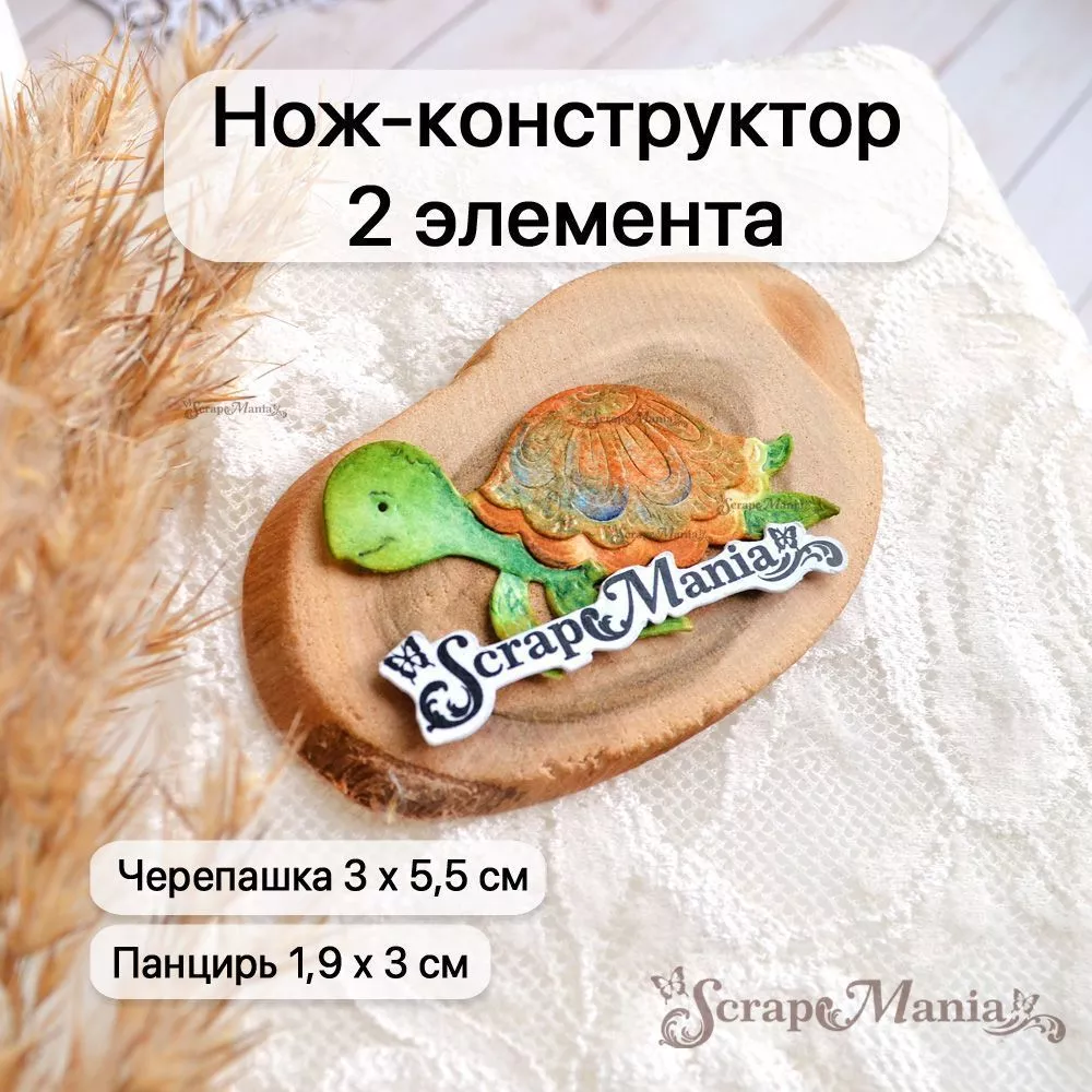 В наборе 2 ножа, соединенных перемычкой, которую при необходимости можно перекусить. Общий размер ножа 5х5,5 см. Размеры: черепашка 3х5,5 см, панцирь 1,9х3 см. Нож-конструктор прекрасно подойдет для создания декора к самым разным страничкам, летним, морским работам, а также идеально впишутся в работу про воспоминания об отпуске на море. Отлично сочетается с другими ножами "Море", "Пляж" и с нашими коллекциями бумаги "Море, я скучала", "Мой капитан", "Океания" и "Морячок"