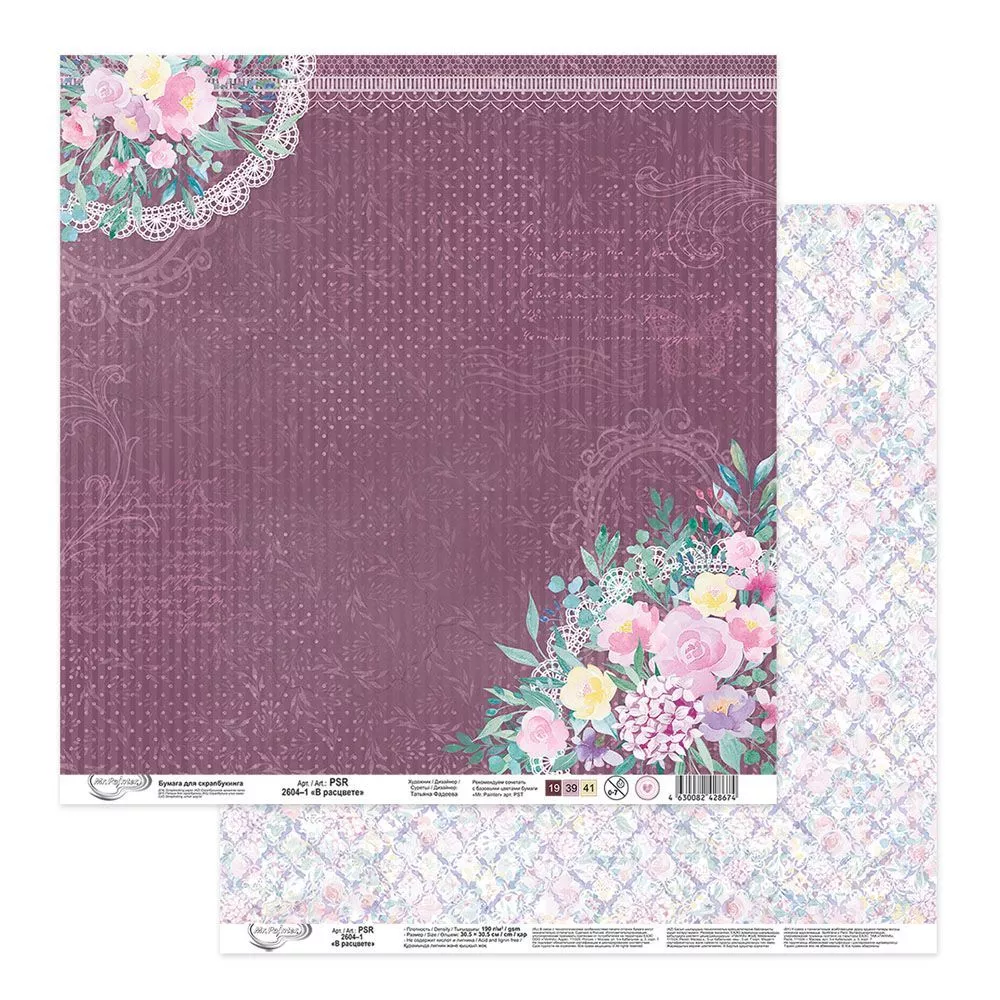 Декоративная бумага для оформления страничек и открыток размером 30х30 см